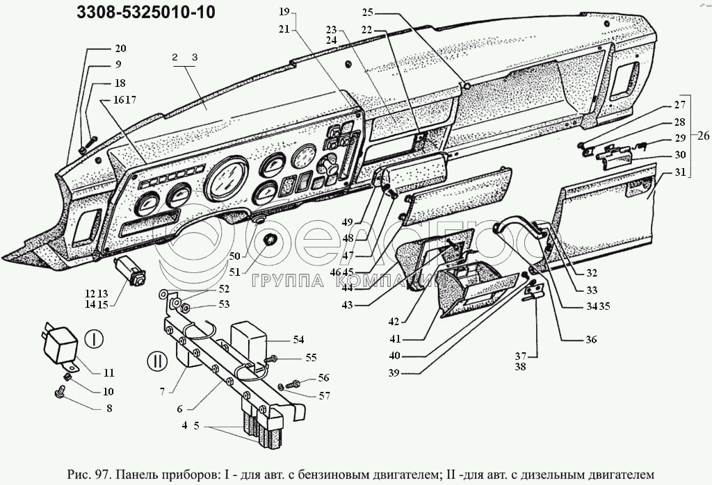 Каталог запасных частей к технике: ГАЗ-3308. Панель приборов