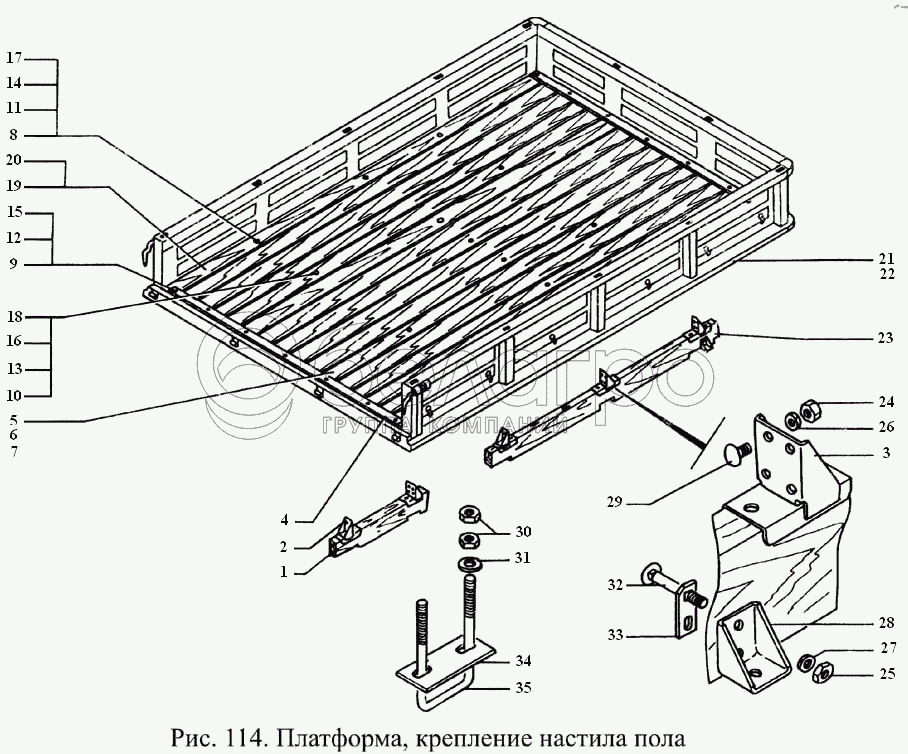 Каталог запасных частей к технике: ГАЗ-3308. Платформа, крепление настила пола