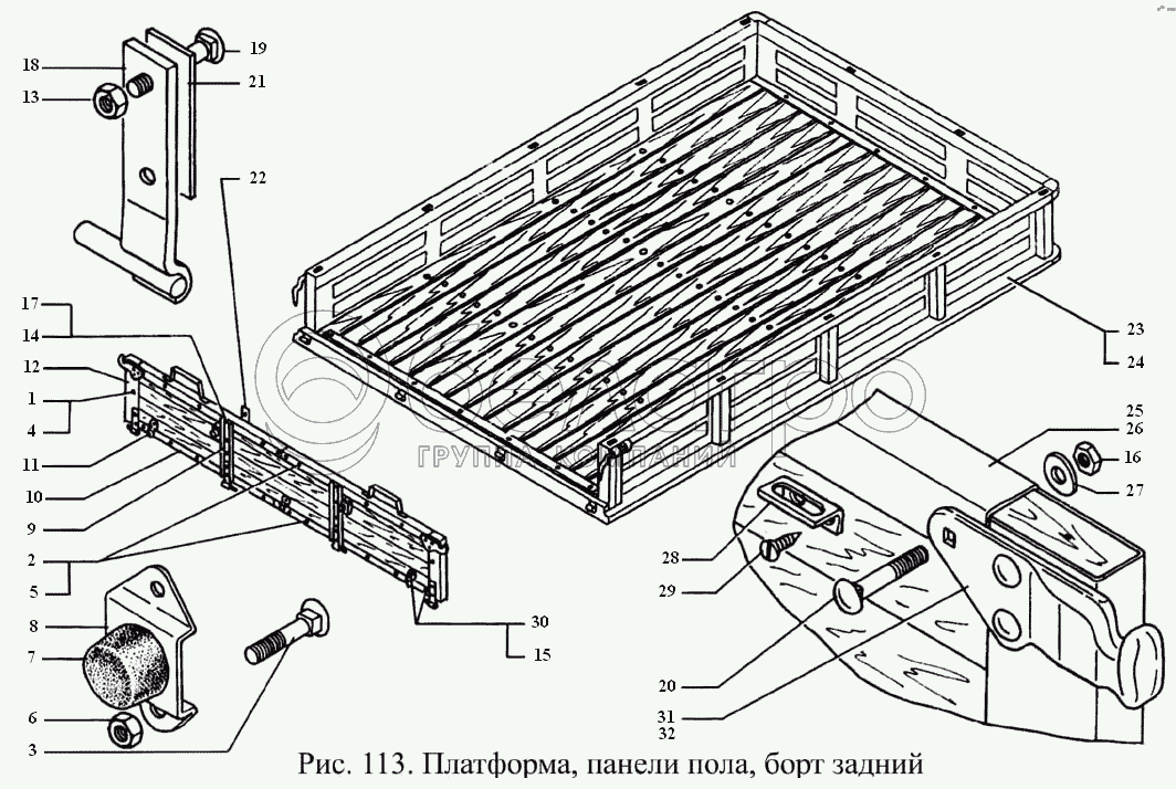Каталог запасных частей к технике: ГАЗ-3308. Платформа, панели пола, борт задний