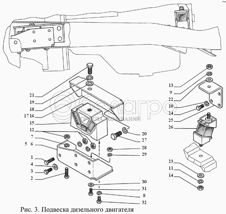 Каталог запасных частей к технике: ГАЗ-3308. Подвеска дизельного двигателя