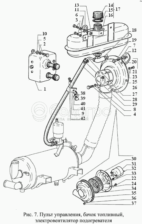 Каталог запасных частей к технике: ГАЗ-3308. Пульт управления, бачок топливный, электровентилятор подогревателя
