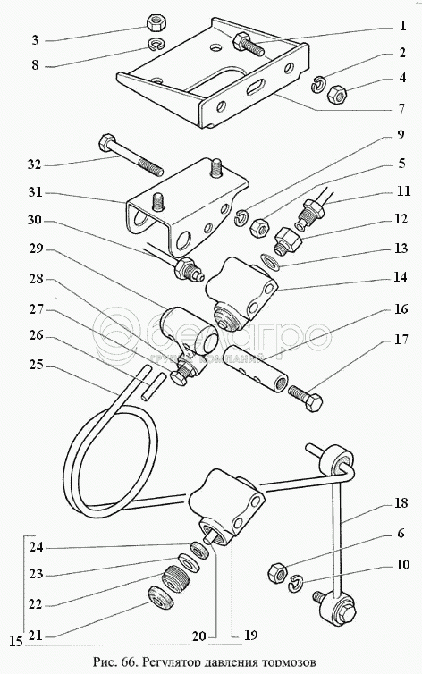 Каталог запасных частей к технике: ГАЗ-3308. Регулятор давления тормозов