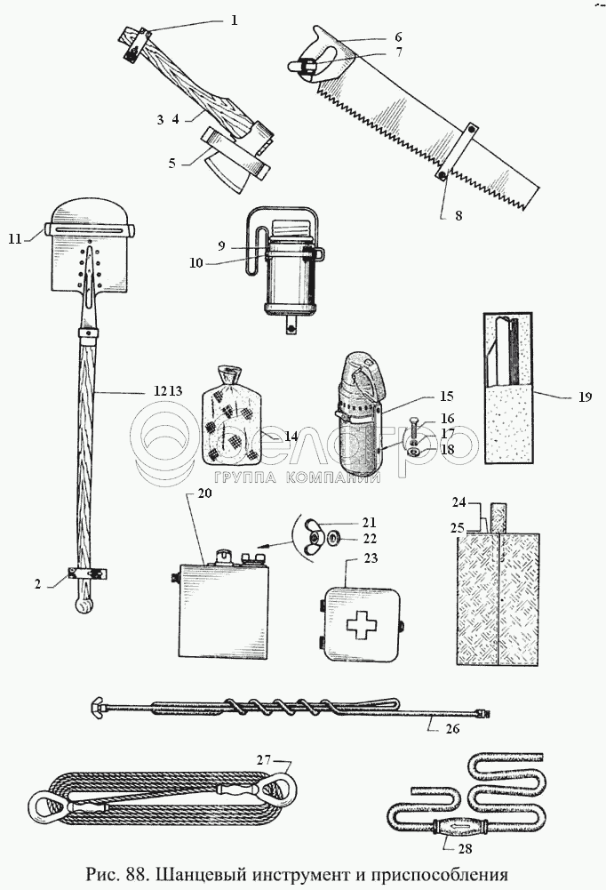 Каталог запасных частей к технике: ГАЗ-3308. Шанцевый инструмент и приспособления