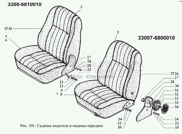 Каталог запасных частей к технике: ГАЗ-3308. Сиденье водителя и сиденье переднее