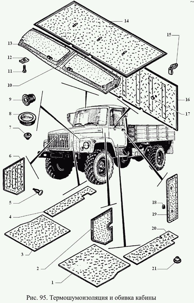 Каталог запасных частей к технике: ГАЗ-3308. Термошумоизоляция и обивка кабины