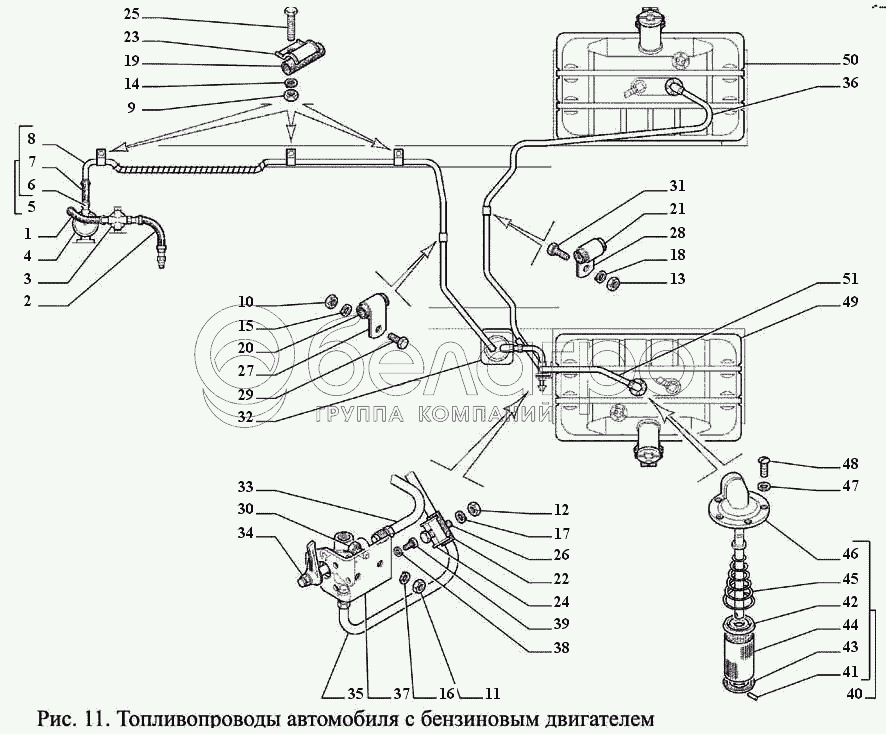 Каталог запасных частей к технике: ГАЗ-3308. Топливопроводы автомобиля с бензиновым двигателем