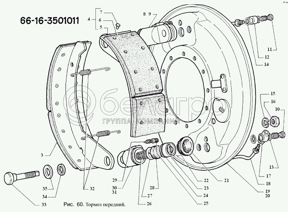 Каталог запасных частей к технике: ГАЗ-3308. Тормоз передний