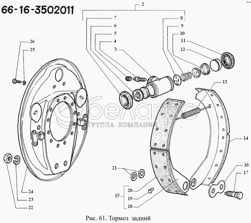 Каталог запасных частей к технике: ГАЗ-3308. Тормоз задний