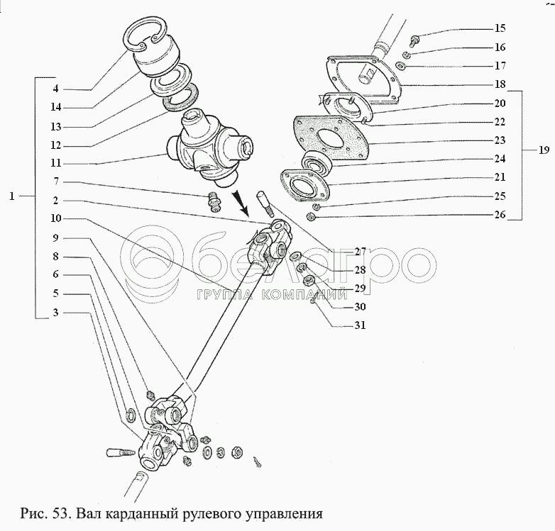 Каталог запасных частей к технике: ГАЗ-3308. Вал карданный рулевого управления