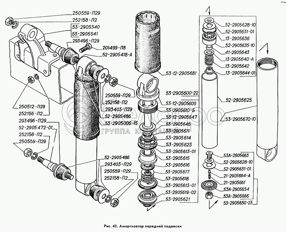 Каталог запасных частей к технике: ГАЗ-3309. Амортизаторы передней подвески
