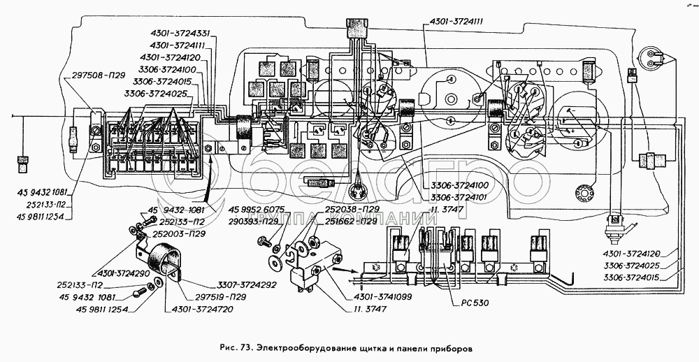 Каталог запасных частей к технике: ГАЗ-3309. Электрооборудование щитка и панели приборов