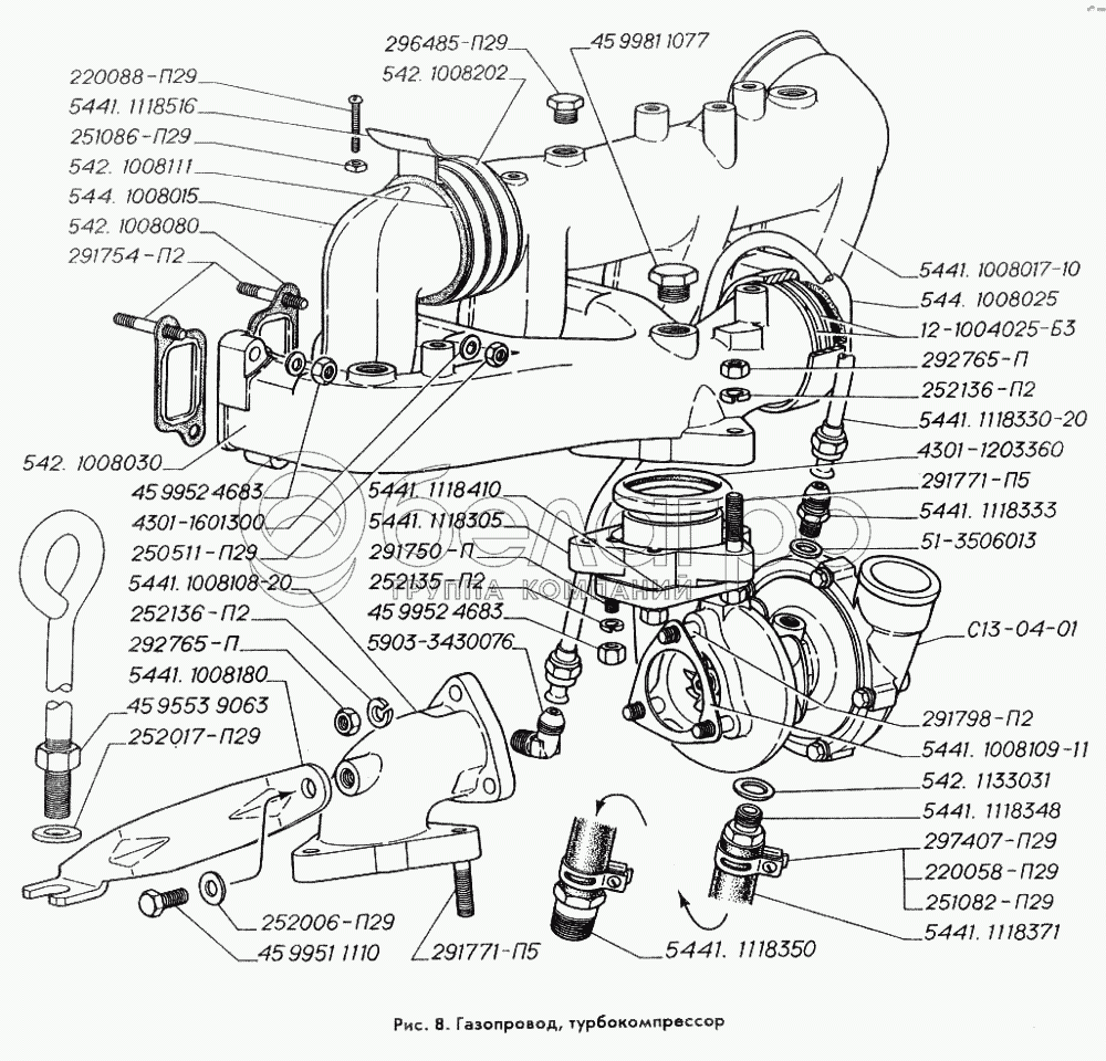 Каталог запасных частей к технике: ГАЗ-3309. Газопровод, турбокомпрессор