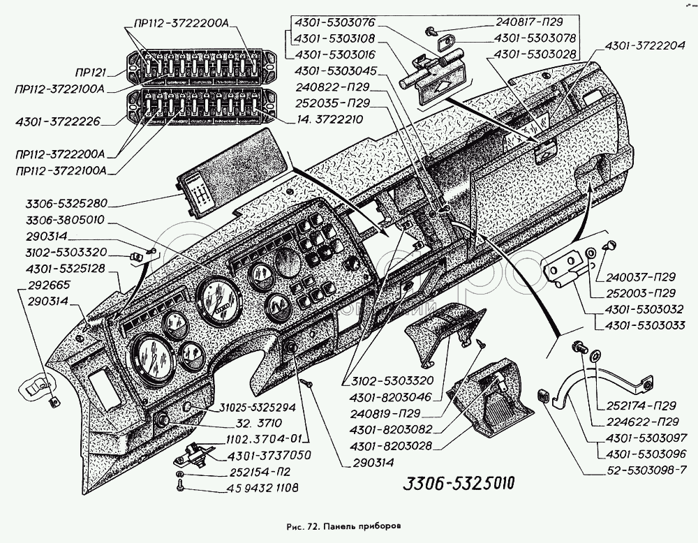 Каталог запасных частей к технике: ГАЗ-3309. Панель приборов