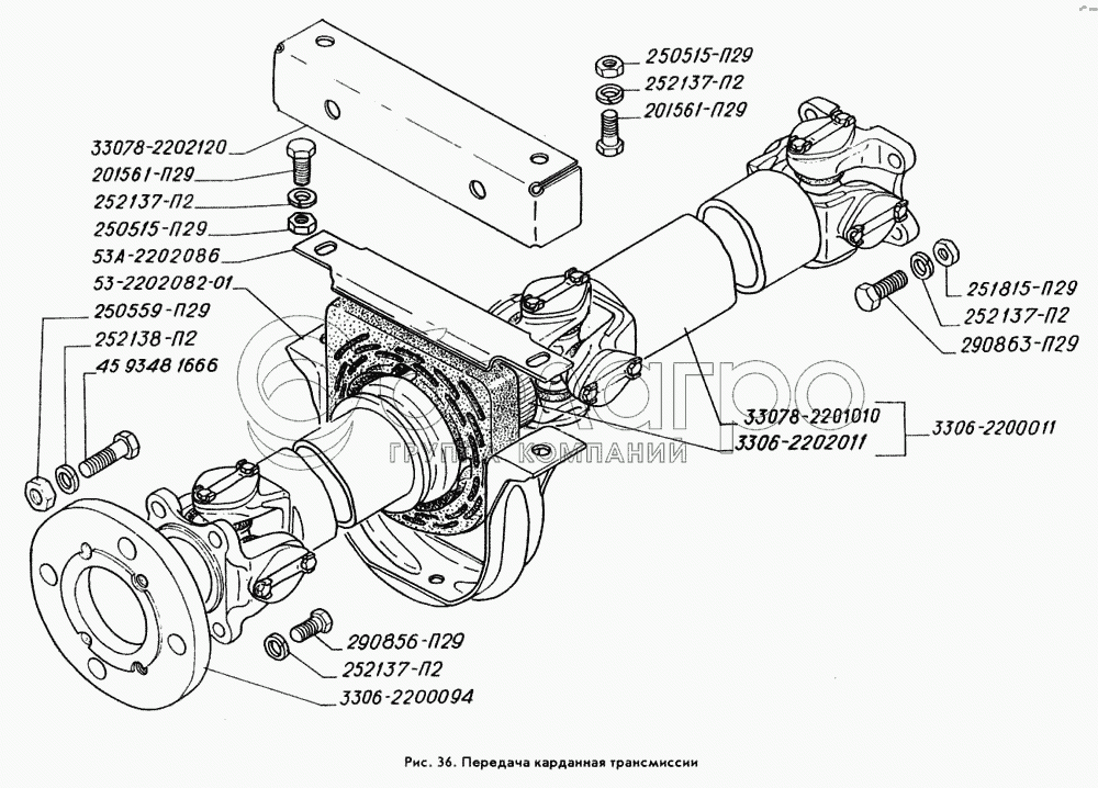 Каталог запасных частей к технике: ГАЗ-3309. Передача карданная трансмиссии