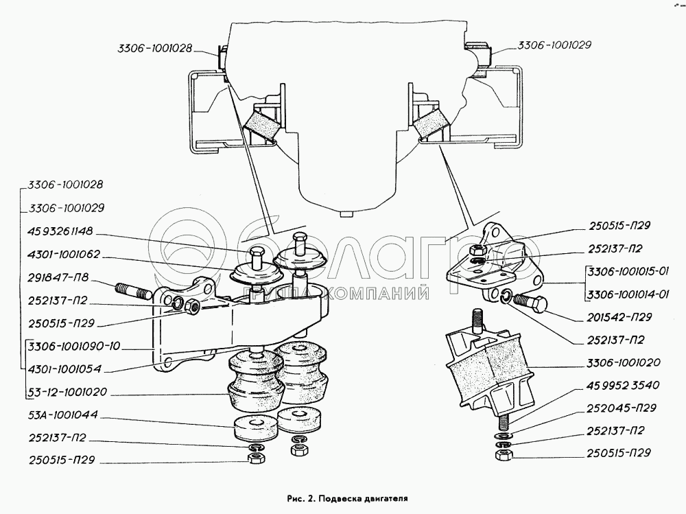 Каталог запасных частей к технике: ГАЗ-3309. Подвеска двигателя