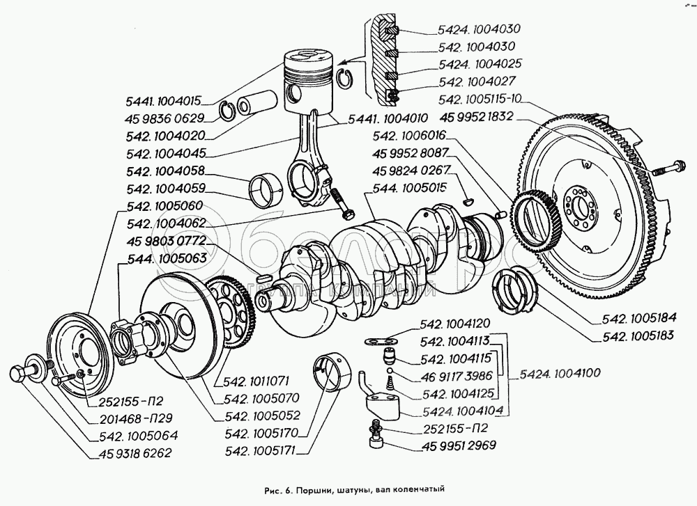 Каталог запасных частей к технике: ГАЗ-3309. Поршни, шатуны, вал коленчатый