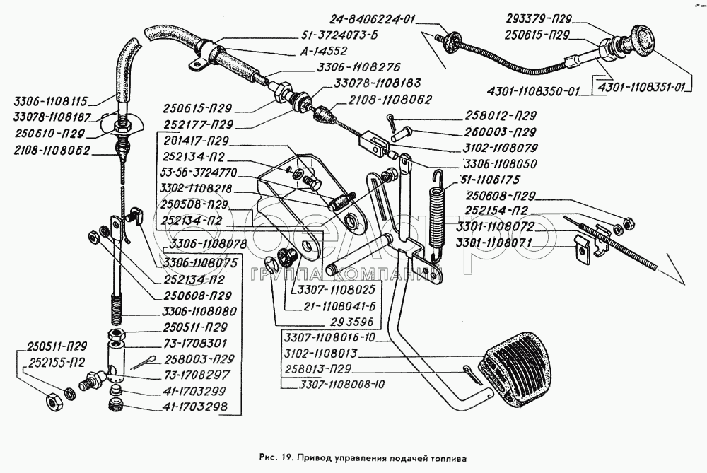 Каталог запасных частей к технике: ГАЗ-3309. Привод управления подачей топлива