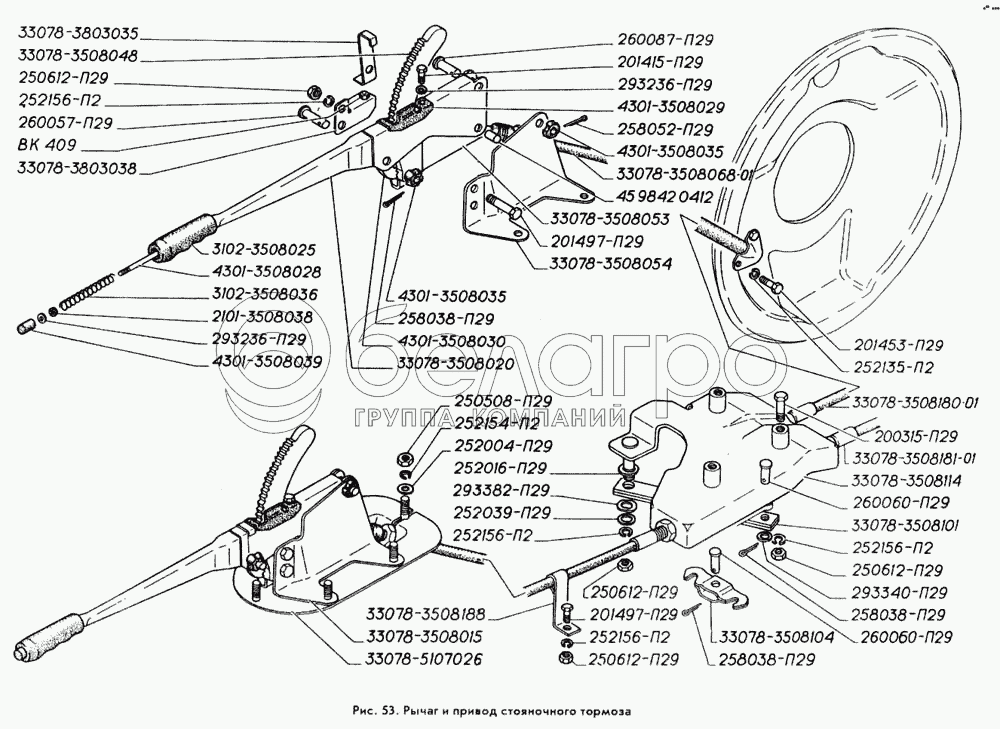 Каталог запасных частей к технике: ГАЗ-3309. Рычаг и привод стояночного тормоза