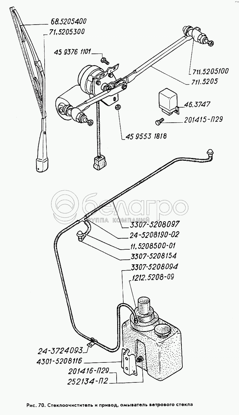 Каталог запасных частей к технике: ГАЗ-3309. Стеклоочиститель и привод, омыватель ветрового стекла