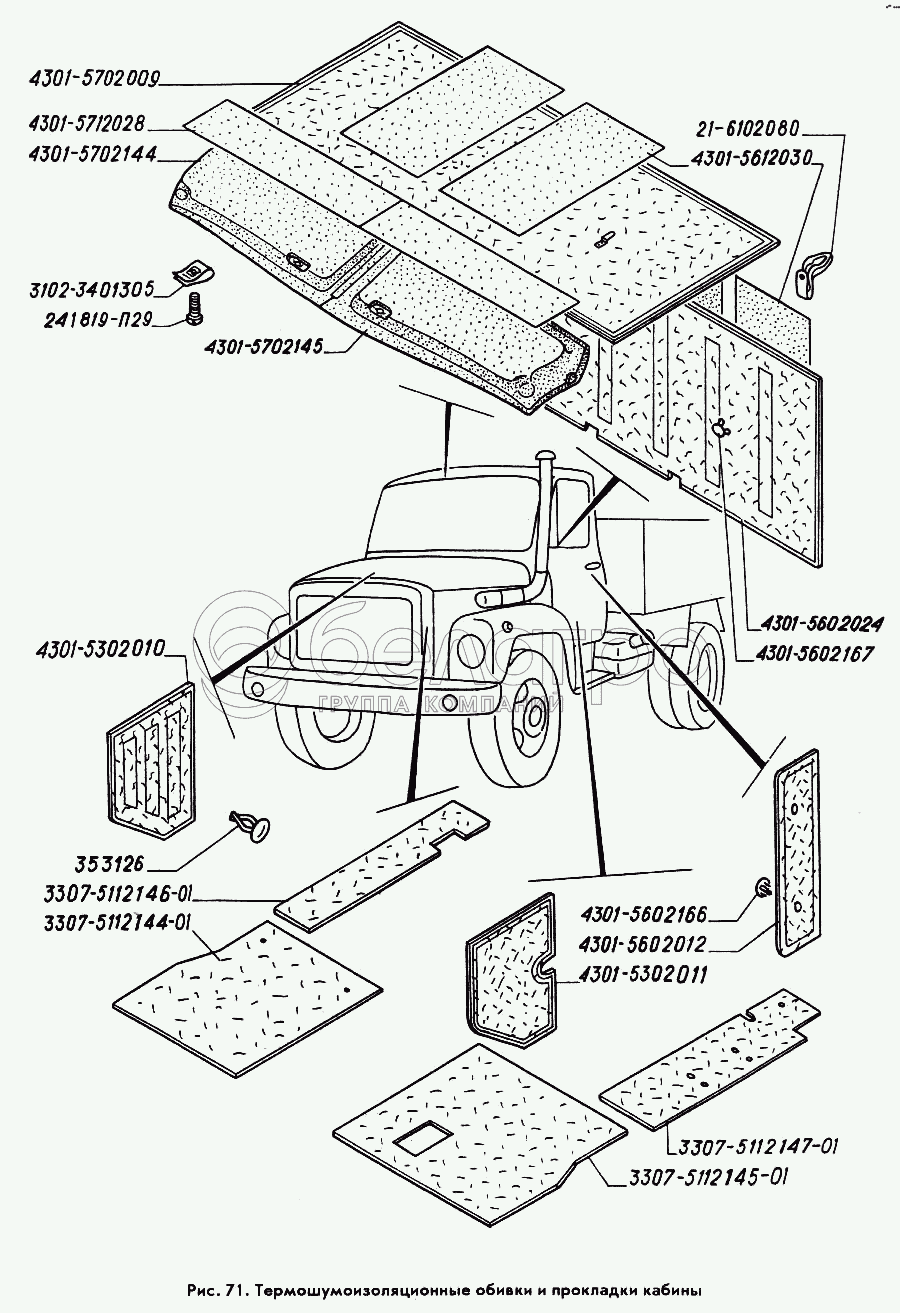 Каталог запасных частей к технике: ГАЗ-3309. Термошумоизоляционные обивки и прокладки кабины