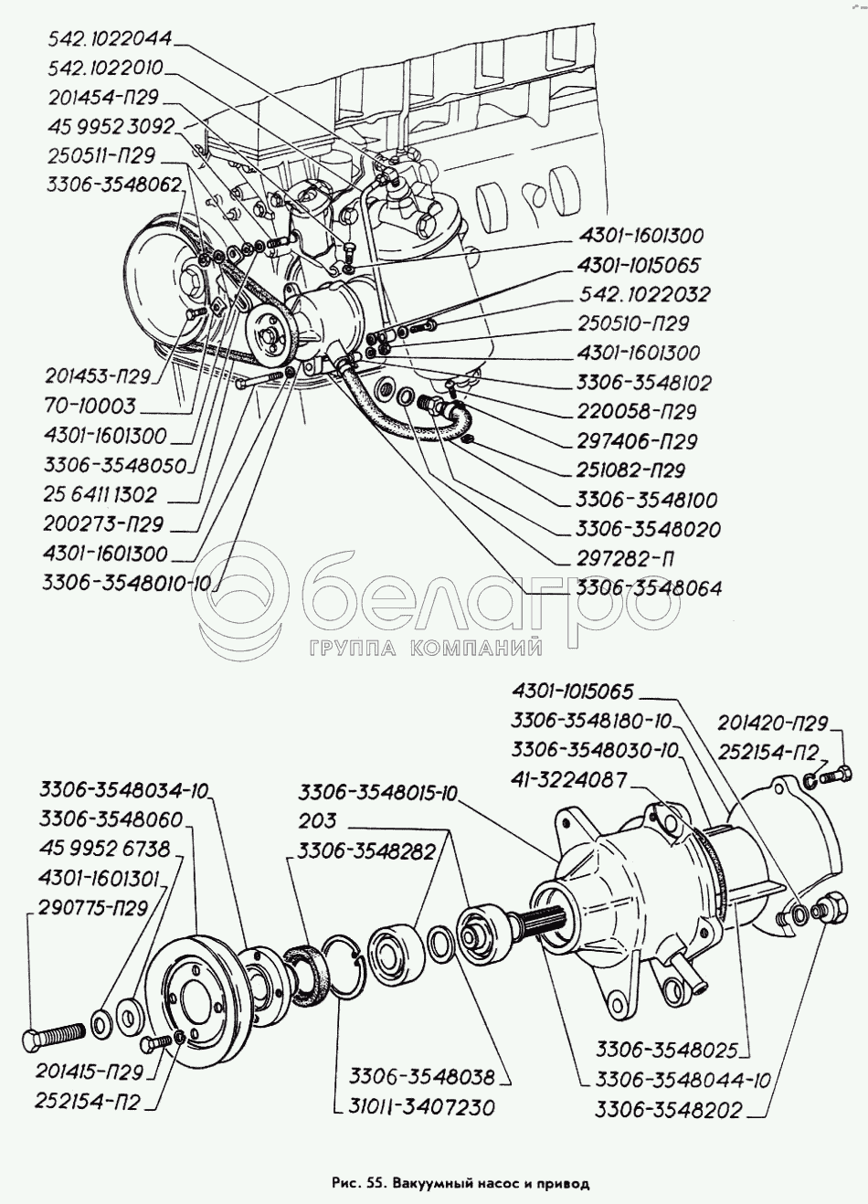 Каталог запасных частей к технике: ГАЗ-3309. Вакуумный насос и привод