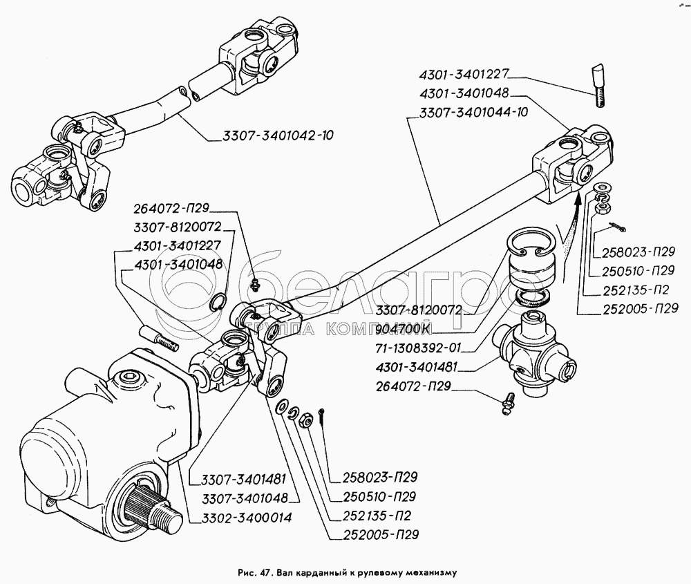 Каталог запасных частей к технике: ГАЗ-3309. Вал карданный к рулевому механизму