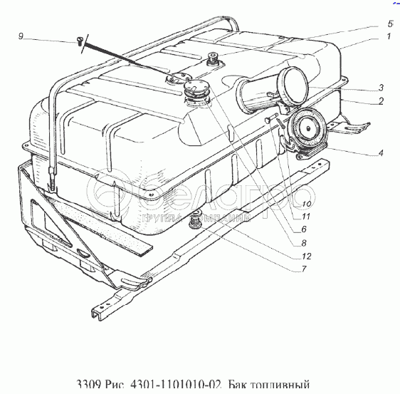 Каталог запасных частей к технике: ГАЗ-3309 (Евро 2). Бак топливный