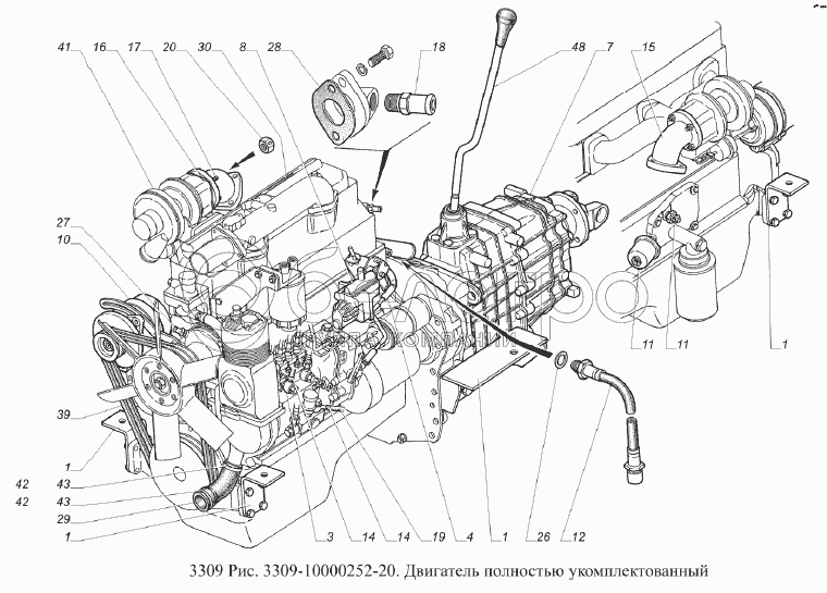 Каталог запасных частей к технике: ГАЗ-3309 (Евро 2). Двигатель полностью укомплектованный