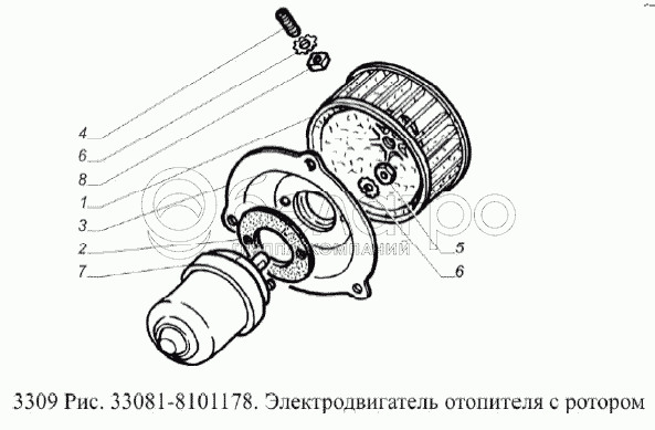 Каталог запасных частей к технике: ГАЗ-3309 (Евро 2). Электродвигатель отопителя с ротором