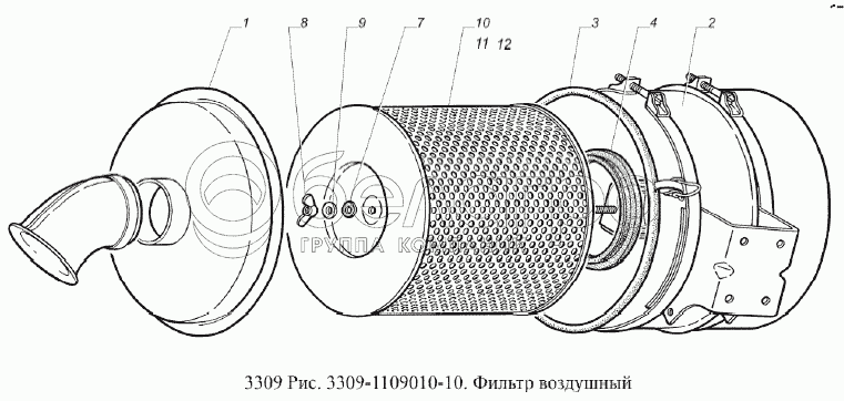 Каталог запасных частей к технике: ГАЗ-3309 (Евро 2). Фильтр воздушный