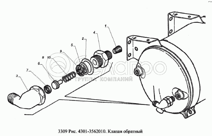 Каталог запасных частей к технике: ГАЗ-3309 (Евро 2). Клапан обратный
