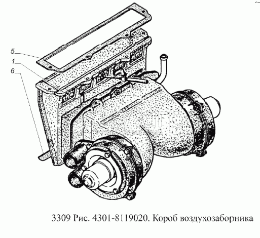 Каталог запасных частей к технике: ГАЗ-3309 (Евро 2). Короб воздухозаборника