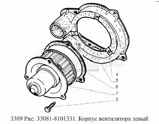 Каталог запасных частей к технике: ГАЗ-3309 (Евро 2). Корпус вентилятора левый