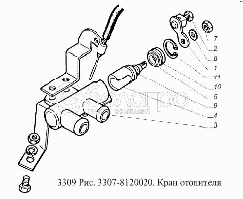 Каталог запасных частей к технике: ГАЗ-3309 (Евро 2). Кран отопителя