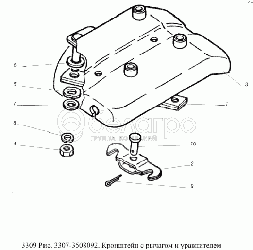 Каталог запасных частей к технике: ГАЗ-3309 (Евро 2). Кронштейн с рычагом и уравнителем