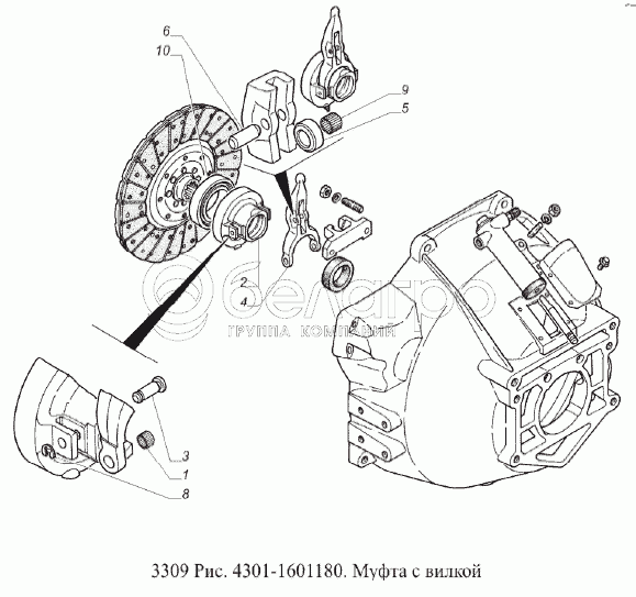 Каталог запасных частей к технике: ГАЗ-3309 (Евро 2). Муфта с вилкой