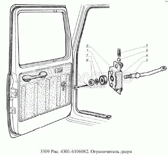 Каталог запасных частей к технике: ГАЗ-3309 (Евро 2). Ограничитель двери
