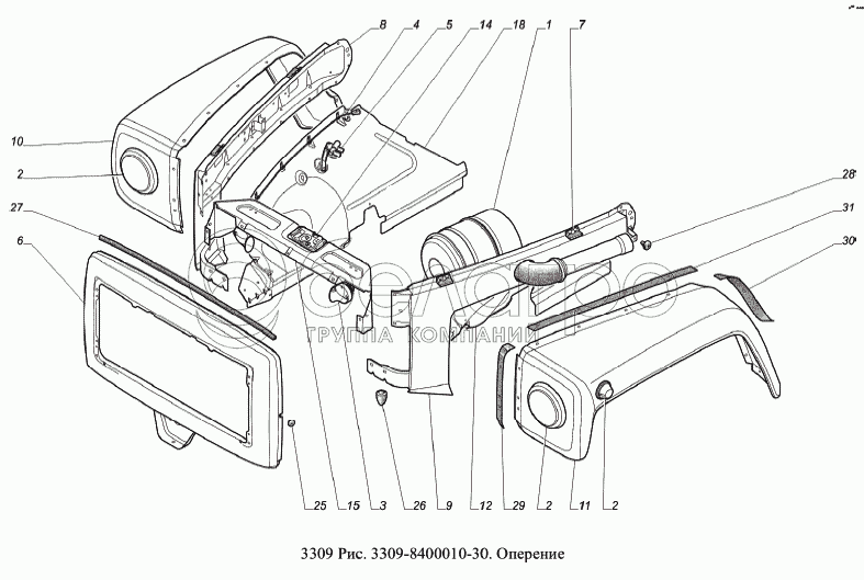 Каталог запасных частей к технике: ГАЗ-3309 (Евро 2). Оперение