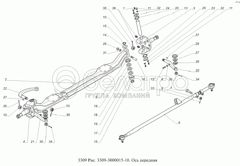 Каталог запасных частей к технике: ГАЗ-3309 (Евро 2). Ось передняя
