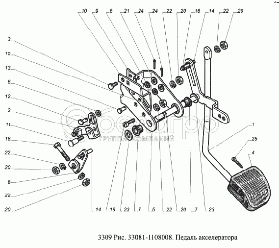 Каталог запасных частей к технике: ГАЗ-3309 (Евро 2). Педаль акселератора