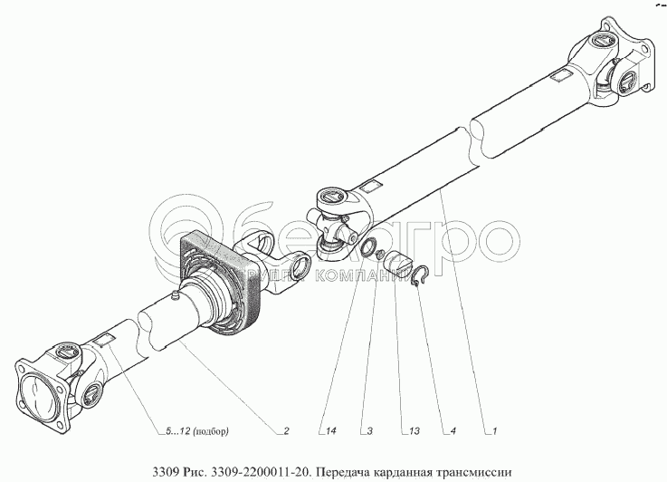 Каталог запасных частей к технике: ГАЗ-3309 (Евро 2). Передача карданная трансмиссии