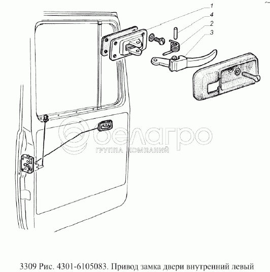Каталог запасных частей к технике: ГАЗ-3309 (Евро 2). Привод замка двери внутренний левый