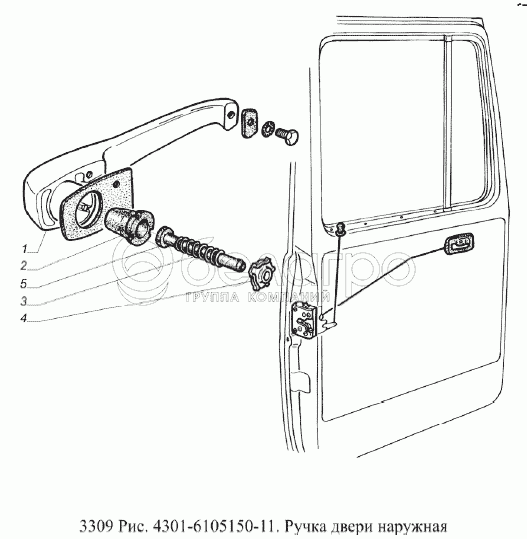 Каталог запасных частей к технике: ГАЗ-3309 (Евро 2). Ручка двери наружная