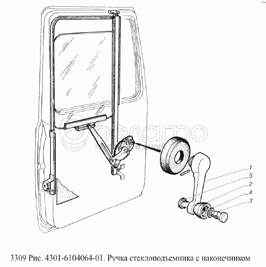 Каталог запасных частей к технике: ГАЗ-3309 (Евро 2). Ручка стеклоподъемника с наконечником
