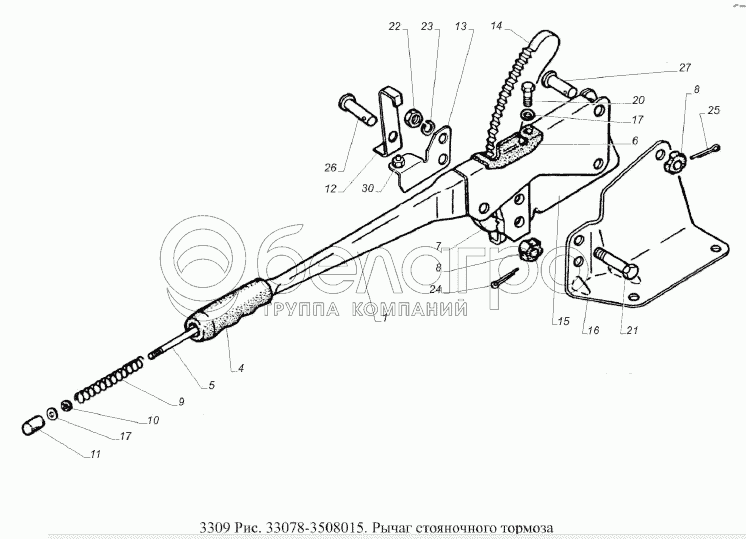 Каталог запасных частей к технике: ГАЗ-3309 (Евро 2). Рычаг стояночного тормоза