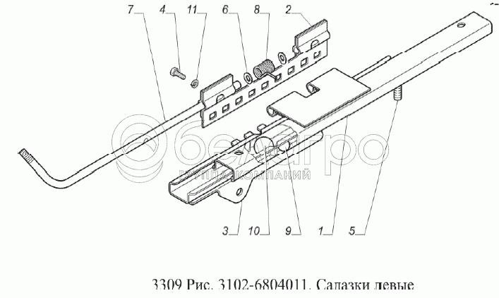 Каталог запасных частей к технике: ГАЗ-3309 (Евро 2). Салазки левые