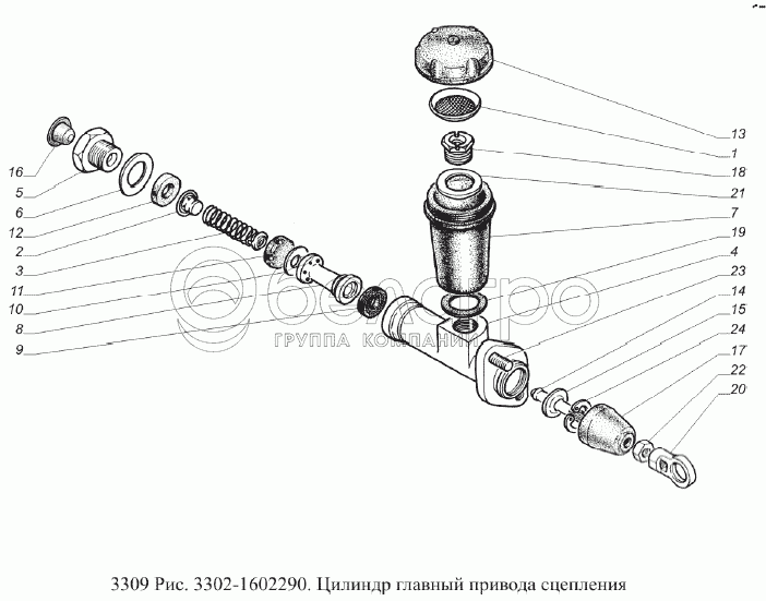 Каталог запасных частей к технике: ГАЗ-3309 (Евро 2). Цилиндр главный привода сцепления
