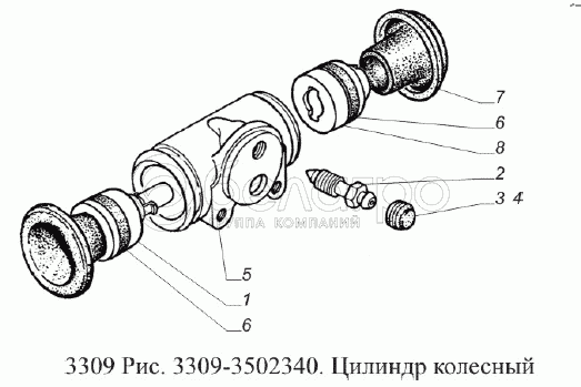 Каталог запасных частей к технике: ГАЗ-3309 (Евро 2). Цилиндр колесный