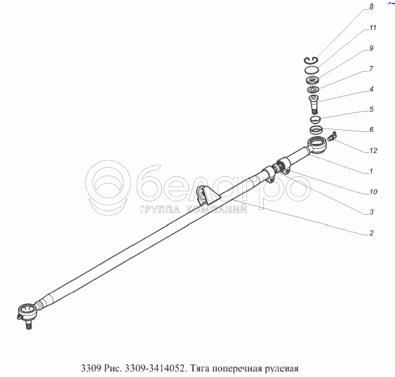 Каталог запасных частей к технике: ГАЗ-3309 (Евро 2). Тяга поперечная рулевая