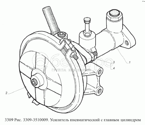 Каталог запасных частей к технике: ГАЗ-3309 (Евро 2). Усилитель пневматический с главным цилиндром